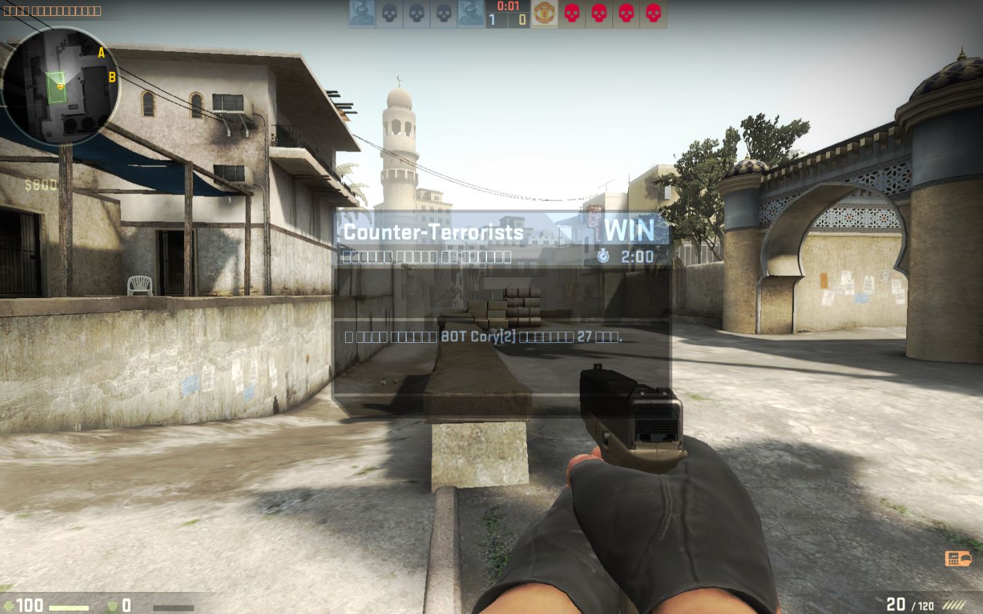 • Casual: легкие боты, стартовый капитал - 2000 $, отключен friendly fire, раунд длится 3 минуты.